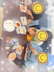 ロールケーキをデコって楽しいおやつタイムになりました。
