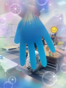 ゴム手袋に詰めて保冷剤としてつかっている児童もいます( ◠‿◠ )