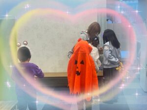 当日は仮装をしてお菓子をもらってご機嫌でした🎵