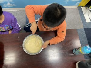 お掃除の後は、ホットケーキ作り
